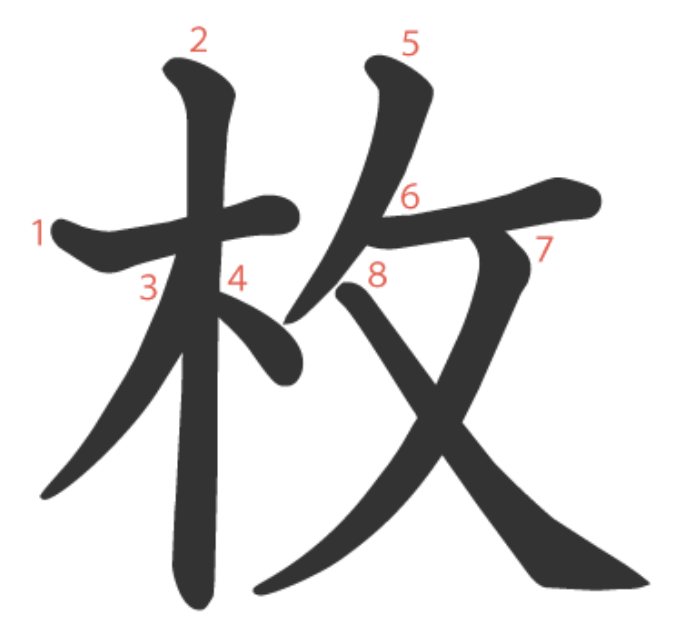 枚는 "나무판자(木)를 한장한장 들어 넘기며(攵) 세다" -> "매수, 장수"라는 뜻의 글자입니다.