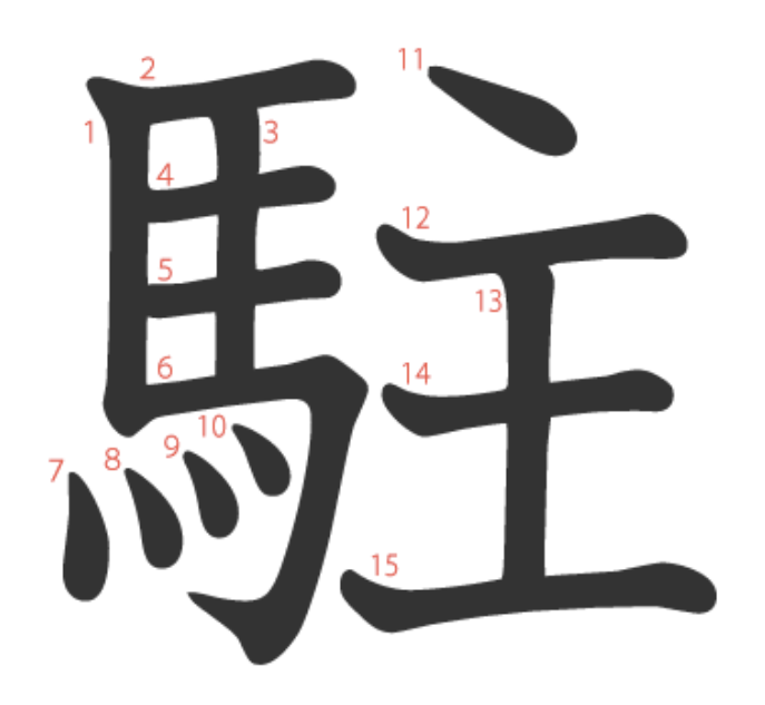 - チュウ 駐車 주차, 駐屯 주둔, 駐日 주일
