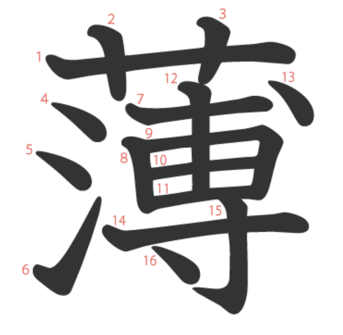 - 훈독 うす(い)、うす(める)、うす(まる)、うす(らぐ)、うす(れる)