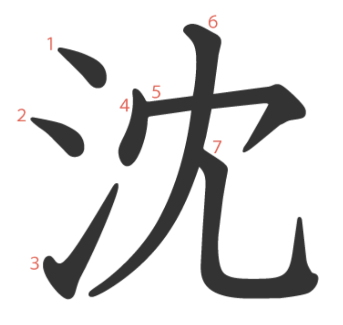 沈 = 氵 + 冘。