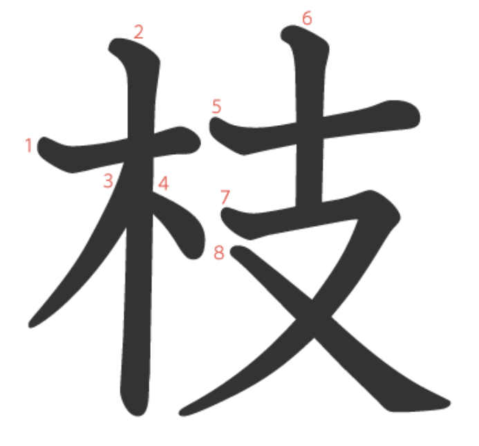(소리부 겸 의미부) 「支」(シ)는 "(갈라져 나온) 지류/지부"를 뜻합니다.
