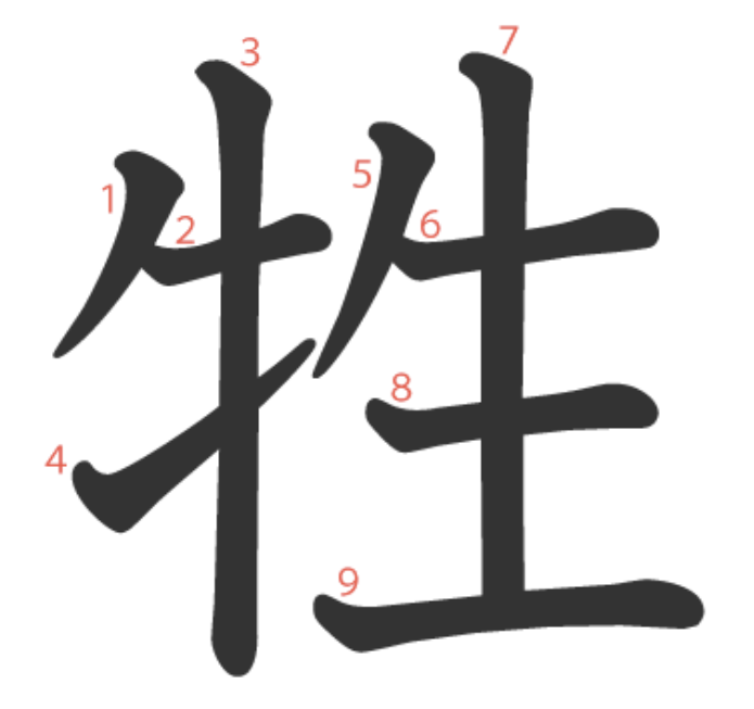 牲는 "소(牜)의 생명(生)을 제물로 바치다" -> "희생"이라는 뜻의 글자입니다.