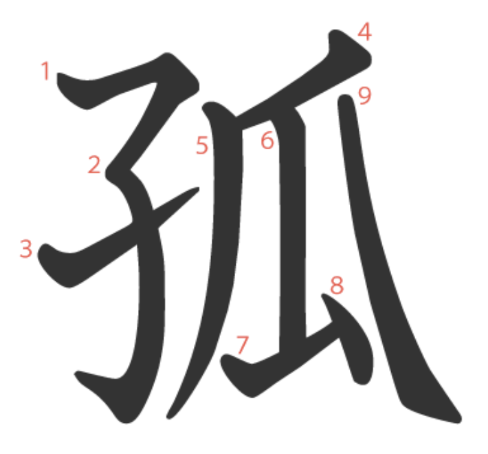 孤는 "홀로 매달린 열매(瓜)처럼 쓸쓸히 남겨진 고아(子)" -> "고아, 외롭다"라는 뜻의 글자입니다.
