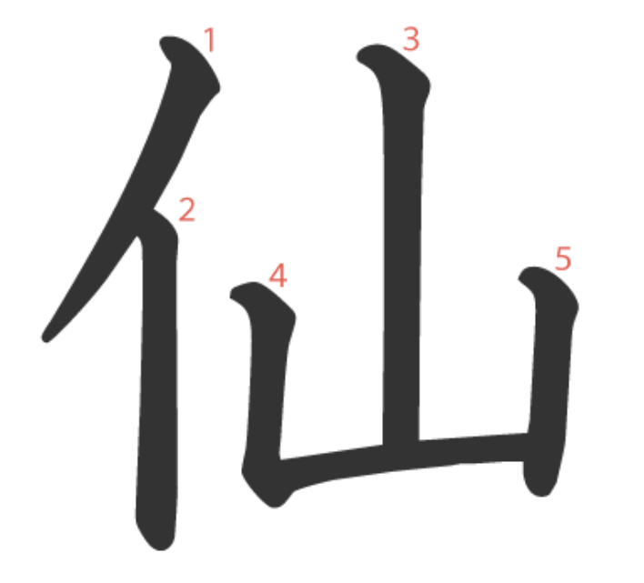 仙 = 亻 + 山。