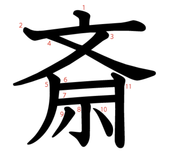斎는 "종교 의식(示)에 앞서 몸(文)을 깨끗이 씻다(丿丨) -> "심신을 깨끗이 하다, 장례식"이라는 뜻의 글자입니다.