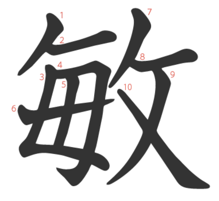 敏 = 毎 + 攵。