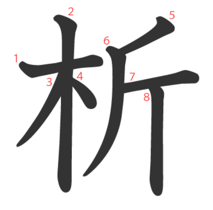 析 = 木 + 斤。