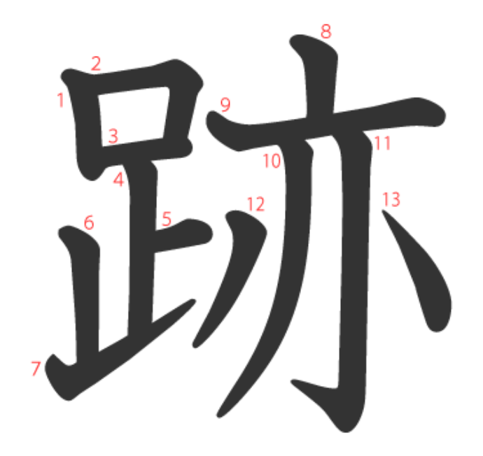 - 의미 "발자취 적". 발자취, 흔적