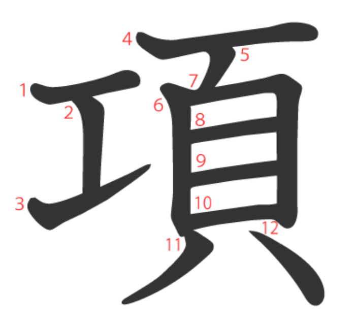 項 = 工 + 頁。