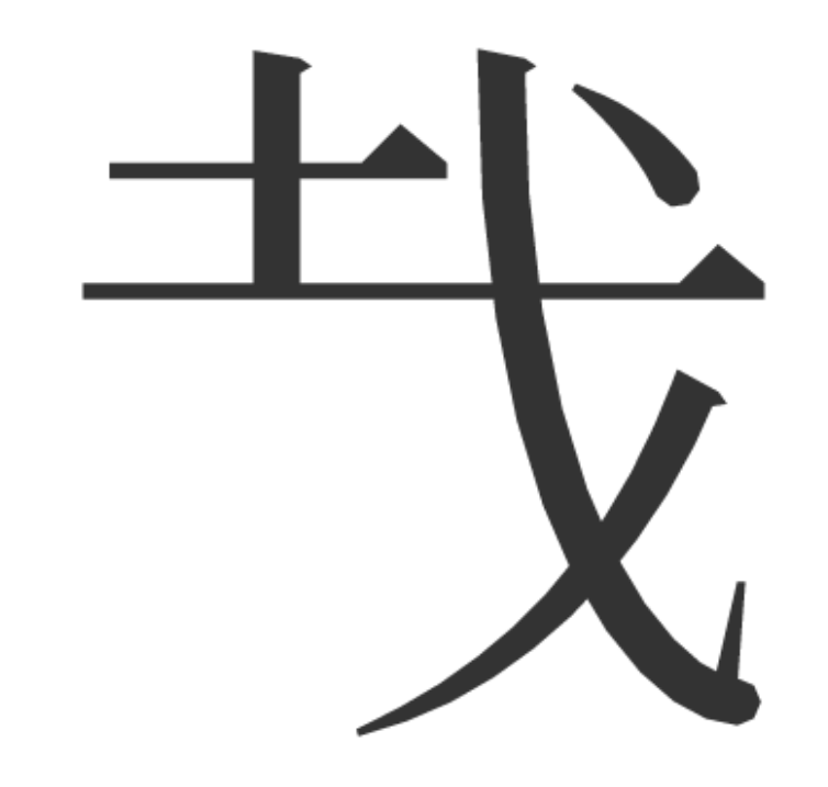 𢦏는 "화려한 장식(十)이 달린 의장용 창(戈)"이라는 뜻의 글자입니다.