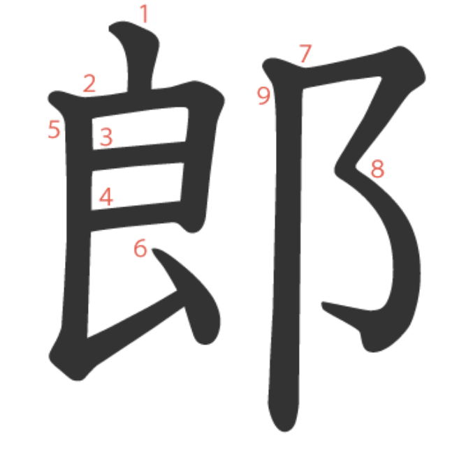 郎는 "도시(⻏)의 좋은(良) 신랑감" -> "젊은 남성"이라는 뜻의 글자입니다.