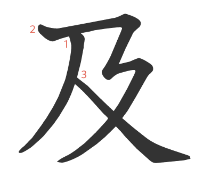 及 = 人 + 又。