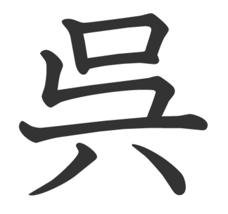呉는 "머리를 옆으로 기우뚱하고 있는 사람"을 그린 상형문자입니다.