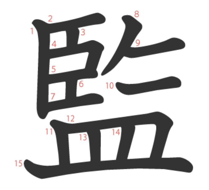 - カン 監督 감독, 監視 감시, 監禁 감금, 監査 감사, 監修 감수
