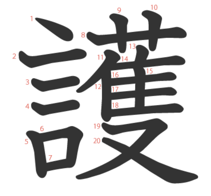 護는 "풀숲(艹)에 쓰러져있는 다친 새(隹)를 구해서(又) 다시 지저귈(言)수 있도록 보살펴주다" -> "보호하다"라는 뜻의 글자입니다.