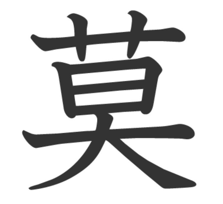 莫는 "수풀(艹+大) 사이로 해(日)가 저물어 사라지다" -> "없다"라는 뜻의 글자입니다.