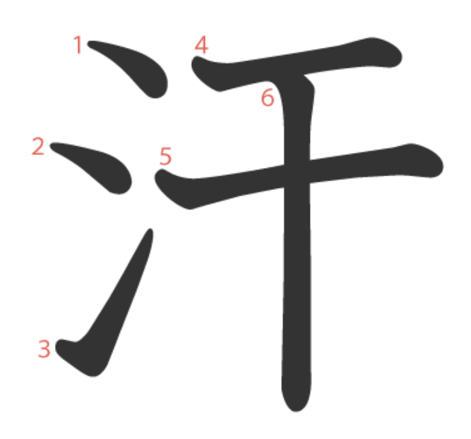 汗는 "땀(氵)이 마르다(干)" -> "땀"이라는 뜻의 글자입니다.