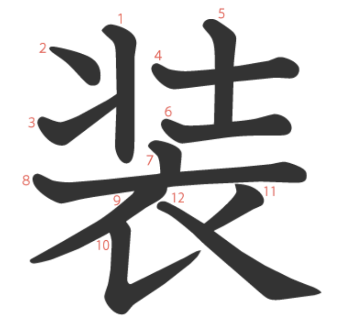 装는 "책상(丬) 앞에서 근엄하게 옷(衣)을 차려입고 앉아있는 선비(士)" -> "꾸미다, 치장하다"라는 뜻의 글자입니다.