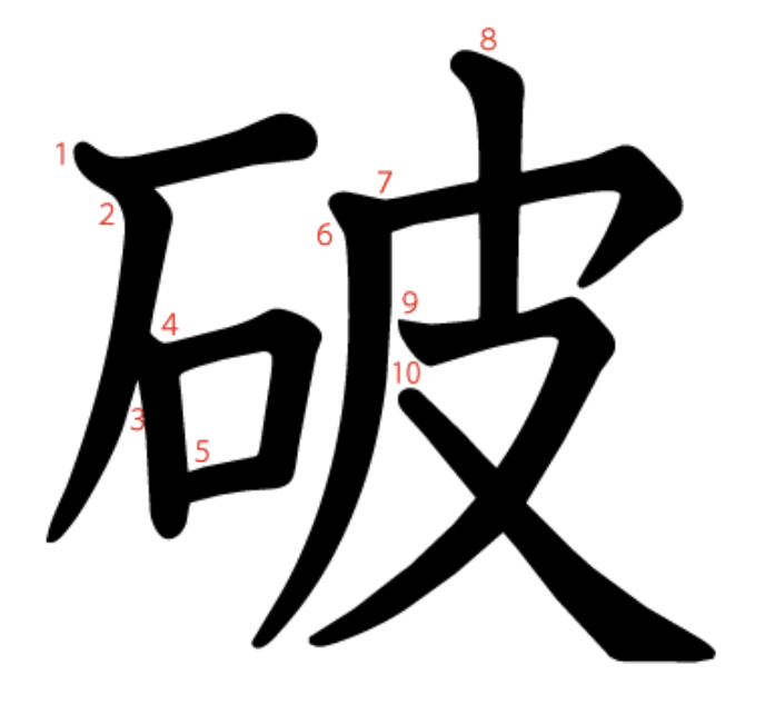 - 의미 "깨뜨릴 파". 깨뜨리다, 파괴하다