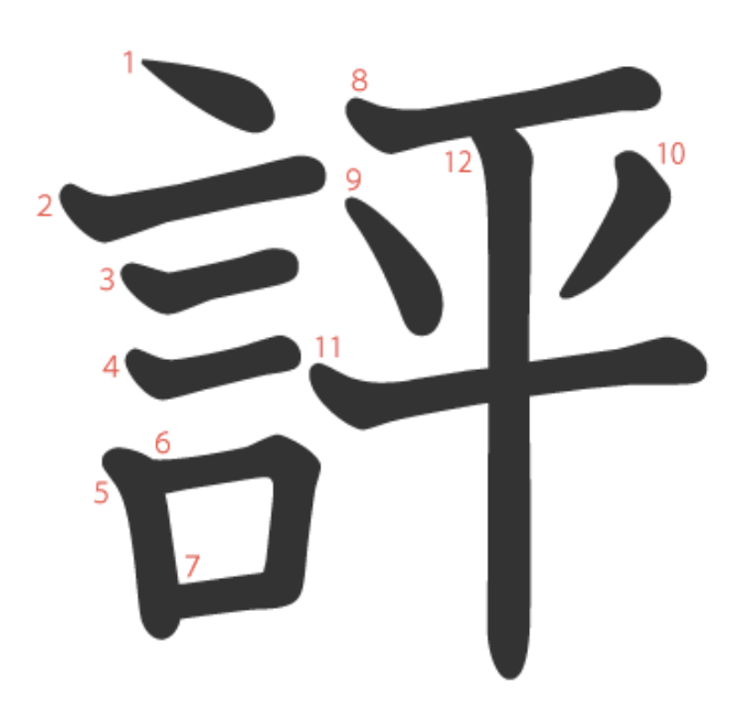 評는 "공평하게(平) 평가하다(言)" -> "비평하다, 평가하다"라는 뜻의 글자입니다.
