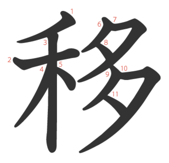 移는 "곡식(禾)이 너무 많아서(多) 다른 곳으로 옮기다" -> "옮기다"라는 뜻의 글자입니다.