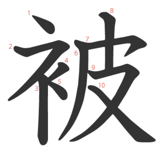 - ヒ 被服 피복(옷을 입다), 被害 피해, 被疑者 피의자