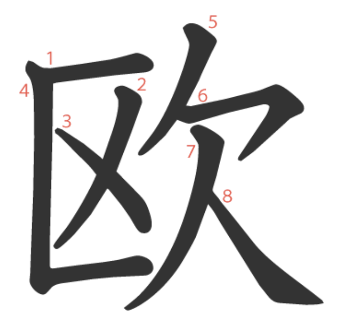 欧는 본래 "입을 벌리고(欠) 토하다(区)" -> "토하다"라는 뜻으로 만들어진 글자입니다.