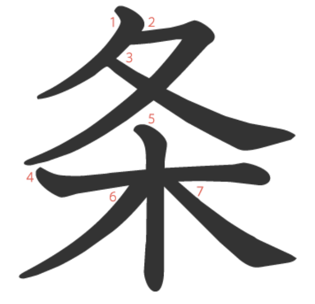 条는 "나무(木)에서 뻗어난 가지들 중 하나를 골라 집어든 손(攵)"을 그린 글자입니다.
