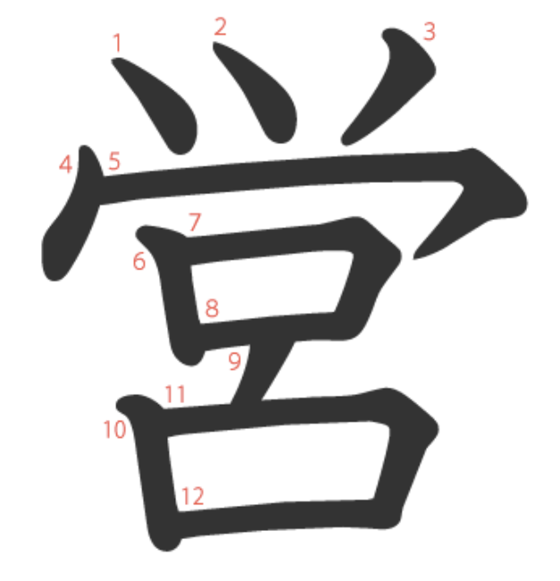 営는 "밤에도 환하게 불이 켜진(⺍+冖) 커다란 건물(呂)" -> "경영하다, 사업하다"라는 뜻의 글자입니다.