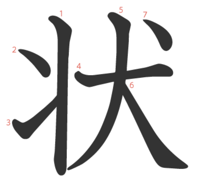 状 = 丬 + 犬。