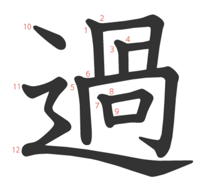 - カ 過度 과도, 過失 과실, 通過 통과, 過密 과밀