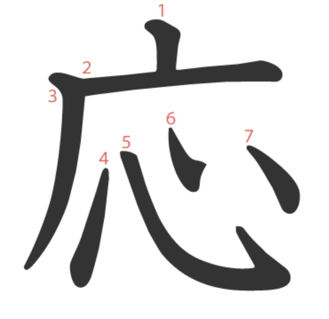 応는 "집(广)에서 기다리는 가족들의 마음(心)에 답하다" -> "응하다, 반응하다"라는 뜻의 글자입니다.
