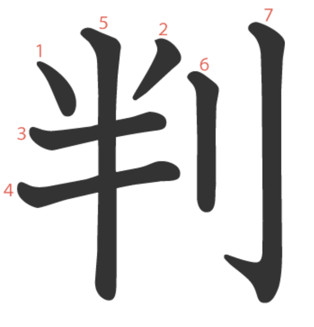 - 의미 "판단할 판". 판단하다, 판정하다