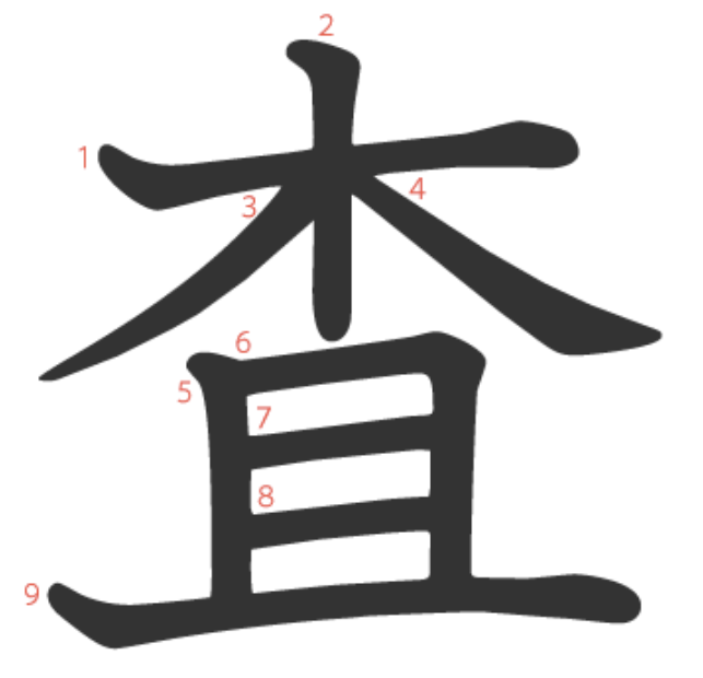査는 "장례(且)를 지낼 관을 만들 좋은 나무(木)를 조사하다" -> "조사하다"라는 뜻의 글자입니다.