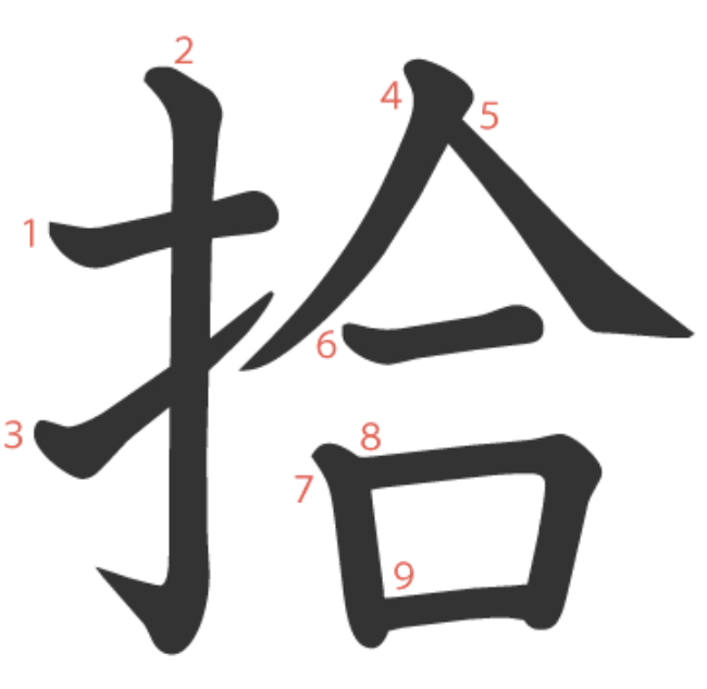 拾는 "주워(扌) 모으다(合)" -> "줍다"라는 뜻의 글자입니다.