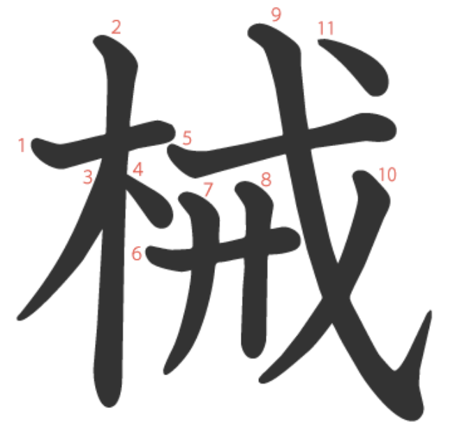 械는 " 나무(木)로 만든 병장기(戒)" -> "기계"라는 뜻의 글자입니다.