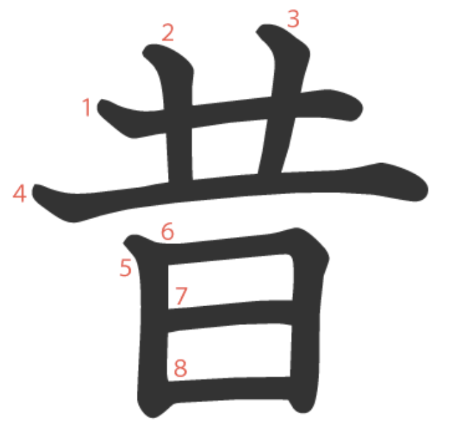 昔 = 龷 + 日。