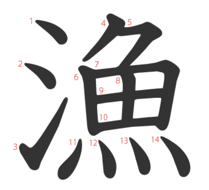 漁는 "물(氵) 속의 물고기(魚)를 잡다" -> "낚시"라는 뜻의 글자입니다.