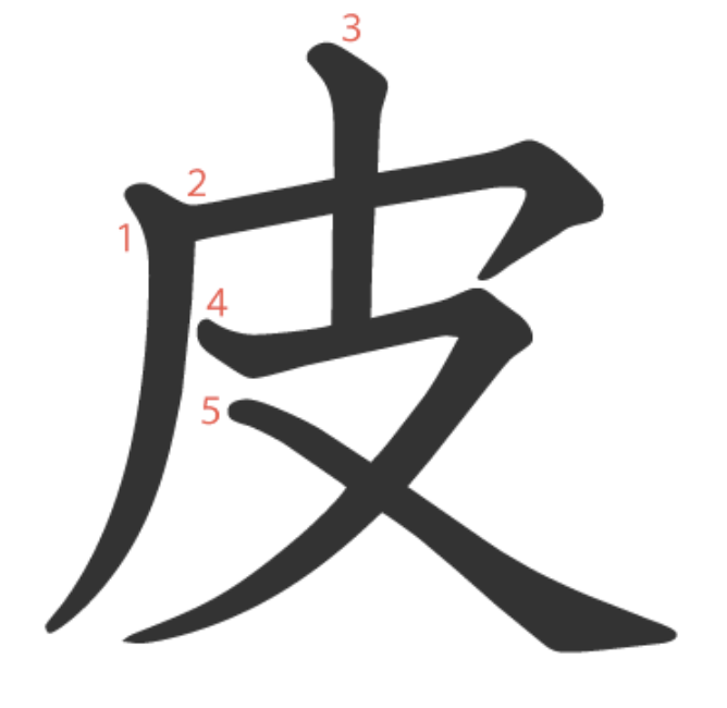 皮 = 厂 + 丨 + 又。