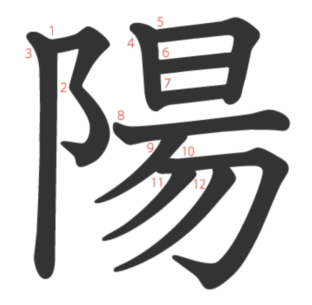 陽는 "언덕(⻖) 위 높이 내리쬐는 태양(昜)" -> "볕, 햇빛, 양기"라는 뜻의 글자입니다.