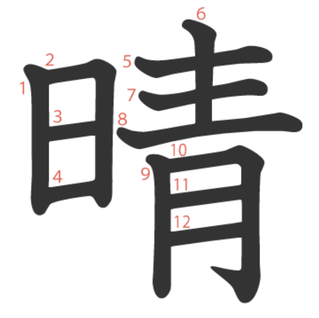 晴는 "푸르게(青) 갠 맑은(日) 하늘" -> "맑은 날씨, 날이 개다"라는 뜻의 글자입니다.
