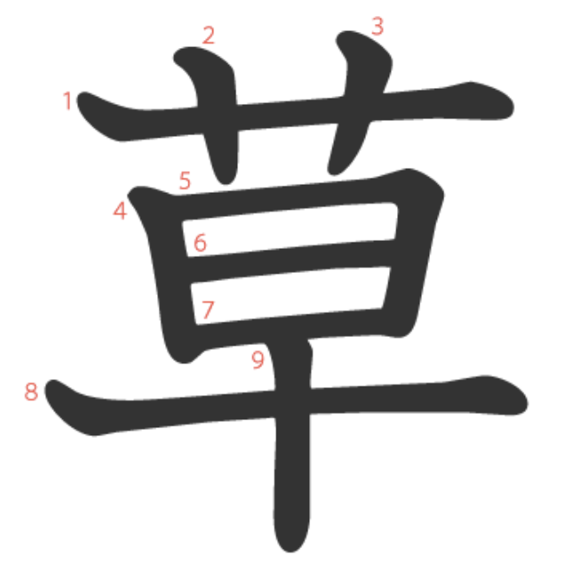- ソウ 草原 초원, 除草 제초, 草稿 초고, 草案 초안