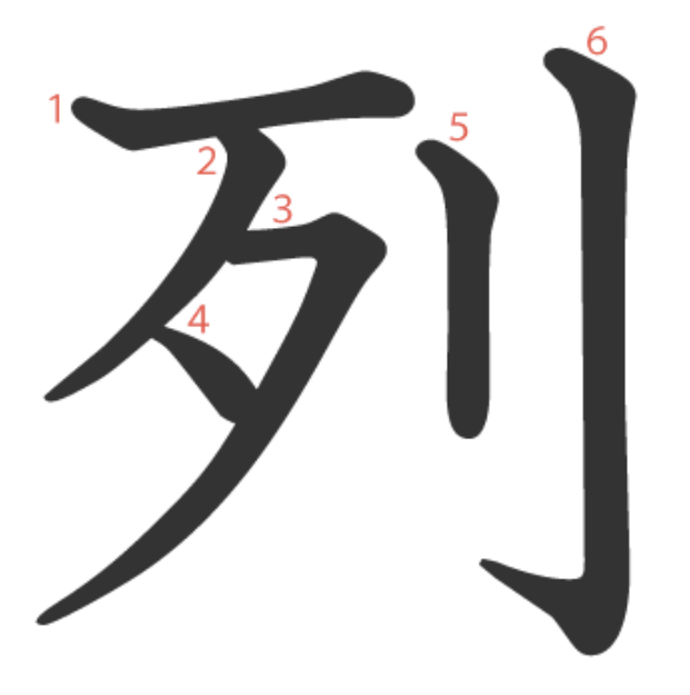 列 = 歹 + 刂。