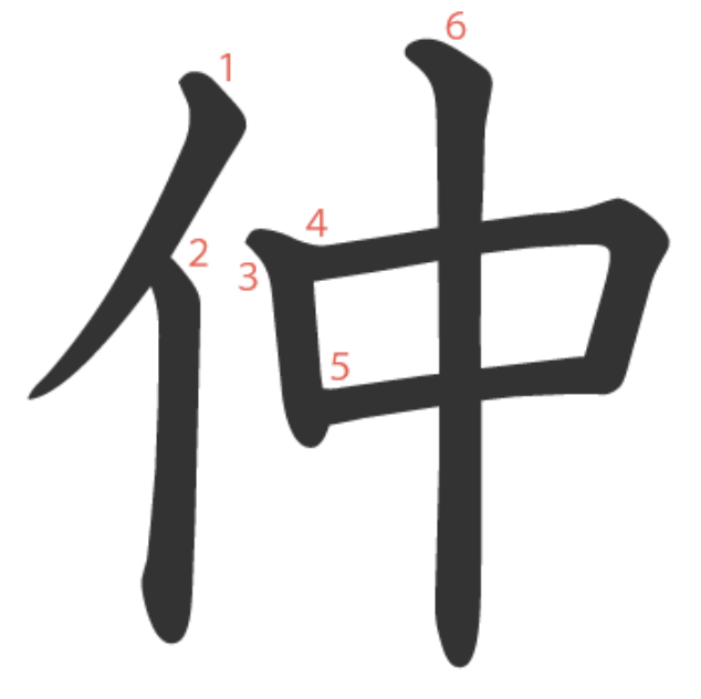 仲 = 亻 + 中。