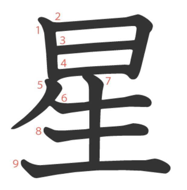 星는 "살아있는(生) 듯이 환하게 빛나는 별(日)" -> "별"이라는 뜻의 글자입니다.