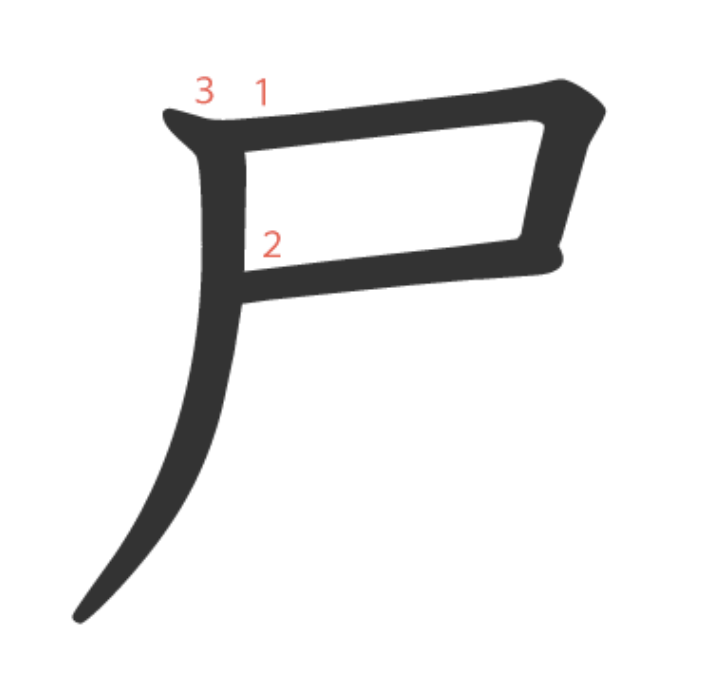 尸가 다른 한자의 일부로 쓰일 때는 서로 전혀 다른 두 가지 의미를 가질 수 있으므로 주의해야 합니다.