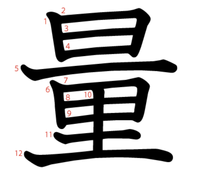 - 의미 "헤아릴 량". 양, 무게를 재다