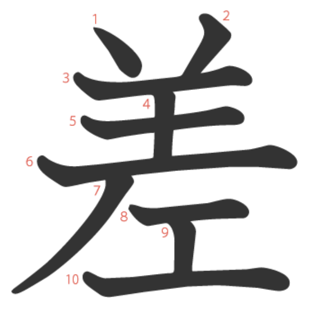 差는 "무리에서 떨어져 혼자 왼쪽(左)으로 가는 양(𦍌)" -> "차이, 다르다"라는 뜻의 글자입니다.
