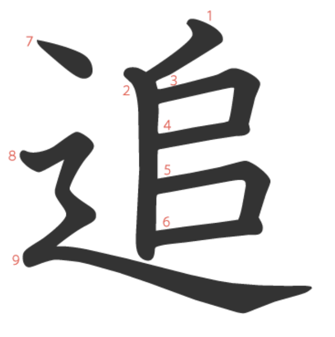 追는 "산(𠂤)을 넘고 길(⻌)을 달려 상대방을 쫓아가다" -> "쫓다, 추적하다"라는 뜻의 글자입니다.