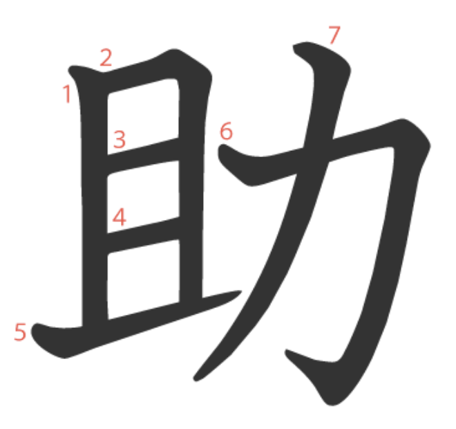 助는 "장례(且)를 돕다(力)" -> "돕다"라는 뜻의 글자입니다.